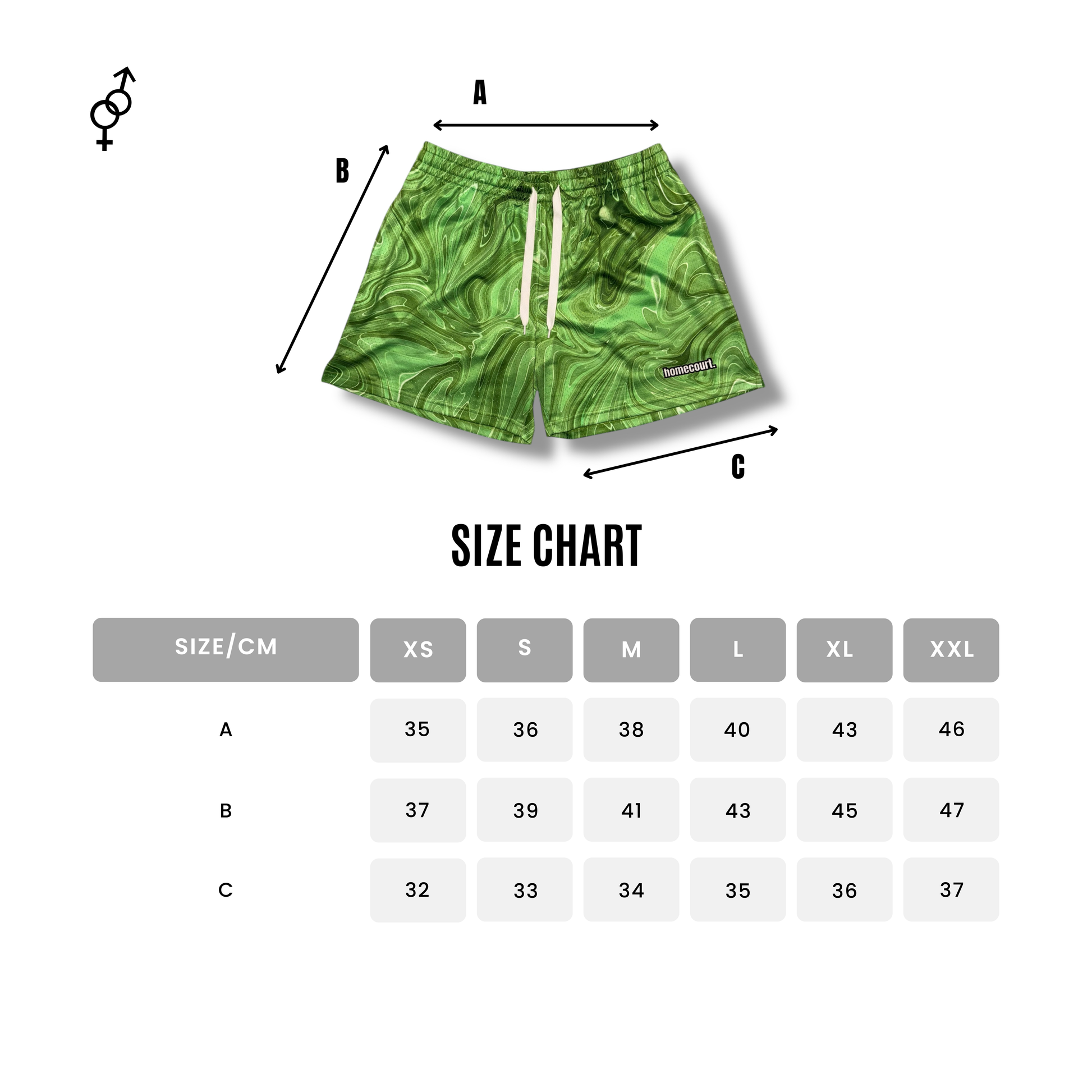 mesh shorts by homecourt. kombinují funkčnost sportovního střihu s vytříbeným estetickým dojmem. Lehké a prodyšné síťovinové provedení v odstínu zeleného jablka doplňuje jemný, mramorově vířivý vzor, který dává každému kusu originální charakter. homecourt. na nohavici a kvalitní stahovací šňůrky dotváří design, který obstojí jak na hřišti, tak ve městě.